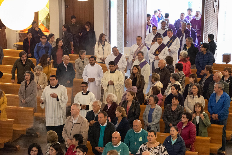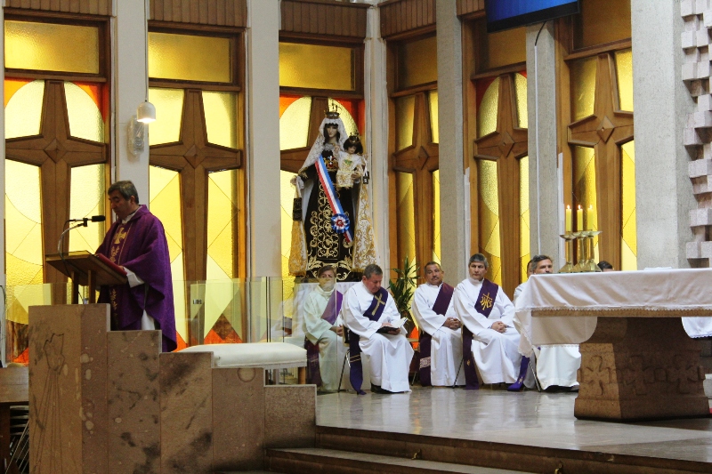 En sus palabras, el padre Juan Andrés señaló: “Se cumple un año de la pascua de nuestro recordado obispo Mons. Héctor Vargas Bastidas. Un día como hoy el Señor llamó a la Casa del Padre a este pastor de la Iglesia San José de Temuco, sin duda que nos sorprendió a todos como se marchó tan rápidamente. Su enfermedad que la llevó en el silencio de su corazón, en alguna ocasión me dijo: “asumo esta enfermedad que me ha dado el Señor y la ofrezco por la unidad de mi Iglesia y para que haya paz en nuestra región. Así la vivió en el silencio de su corazón, hasta que cerró sus ojos para luego despertar junto al Padre del cielo.