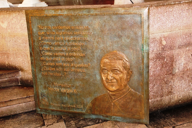 La Fundación de Desarrollo Social y Cultural AITUE, hizo entrega de un memorial, en recuerdo de quien fuera su director, Monseñor Héctor Eduardo Vargas Bastidas, al cumplirse un año de su fallecimiento. Directivos de la Fundación, entregaron este Memorial al Administrador Diocesano, quien posteriormente lo bendijo.