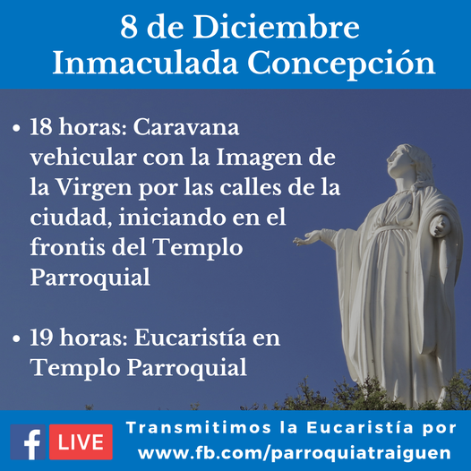 La Parroquia Sagrado Corazón de la comuna de Traiguén, celebra a la Santísima Virgen en este 8 de diciembre con las siguientes actividades.