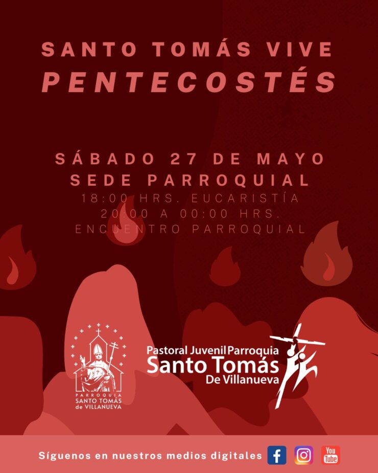 Se invita a toda la comunidad parroquial a celebrar la fiesta de Pentecostés, en la cual se conmemora la venida del Espíritu Santo sobre los Apóstoles, el sábado 27 de mayo, a las 18 horas, en el Templo Parroquial.