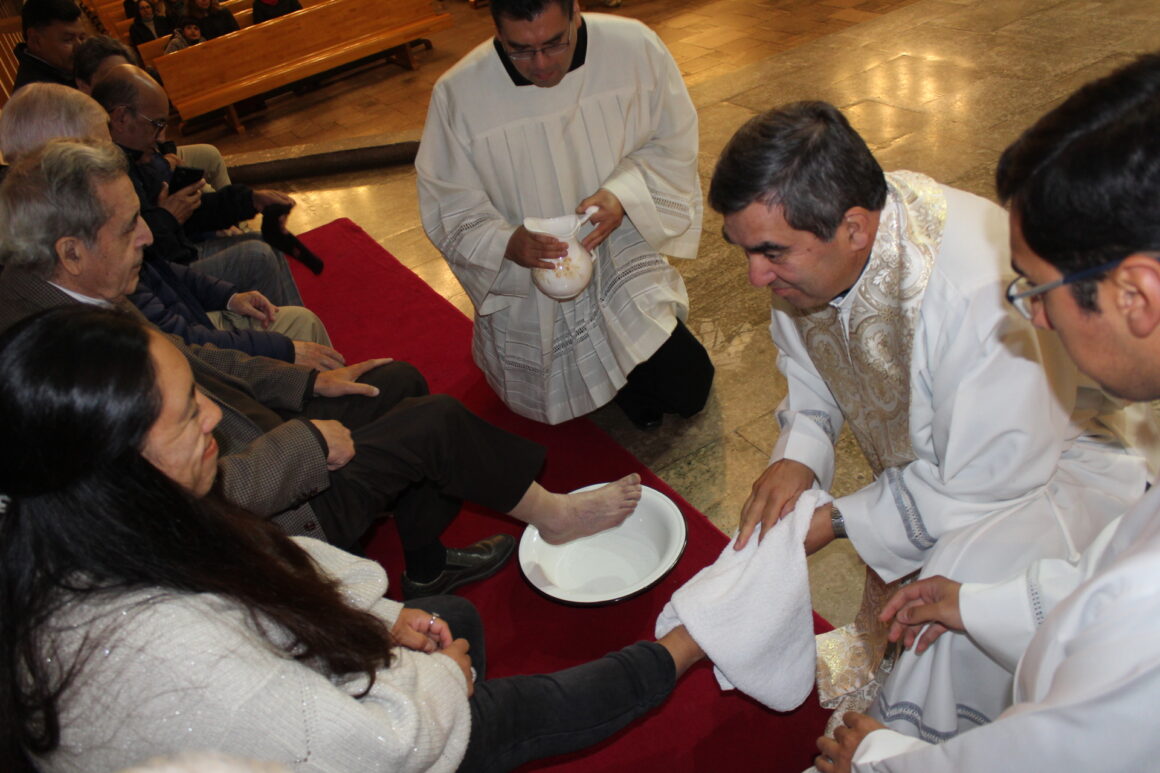 El Jueves Santo, en el Templo Catedral y en todas las parroquias de la Diócesis San José de Temuco, recordamos la última cena, mediante la cual el Señor Jesús, en la noche en que iba a ser entregado, amó hasta el fin a los suyos que estaban en el mundo, realizó el signo de lavar los pies a los 12 Apóstoles, ofreció su Cuerpo y su Sangre a Dios Padre bajo las especies de pan y de vino.