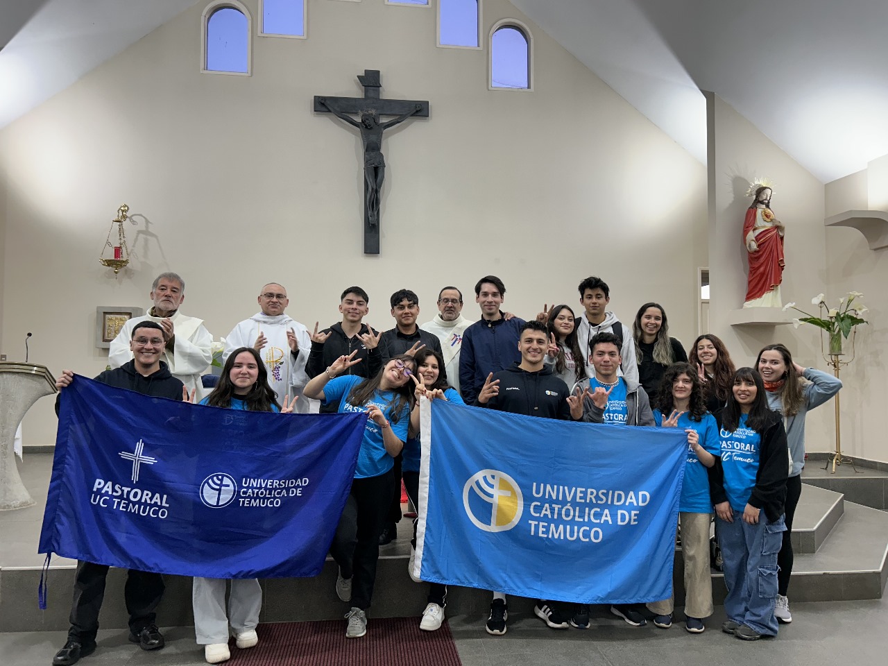 Miembros de diversas comunidades de la Diócesis: de la Parroquia Santo Tomás de Villanueva, de la Parroquia Sagrado Corazón de Jesús de Lautaro, Parroquia San Sebastián de Lonquimay, junto a jóvenes de la Pastoral Universitaria de la UFRO y de la Universidad Católica de Temuco, junto a jóvenes de intercambio de Ecuador y México de la misma universidad, además de fieles provenientes de Purén y Victoria, quienes se reunieron para encomendar su viaje y poner en las manos del Señor esta experiencia de fe.