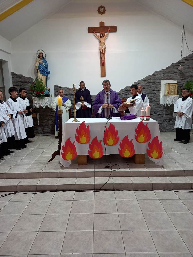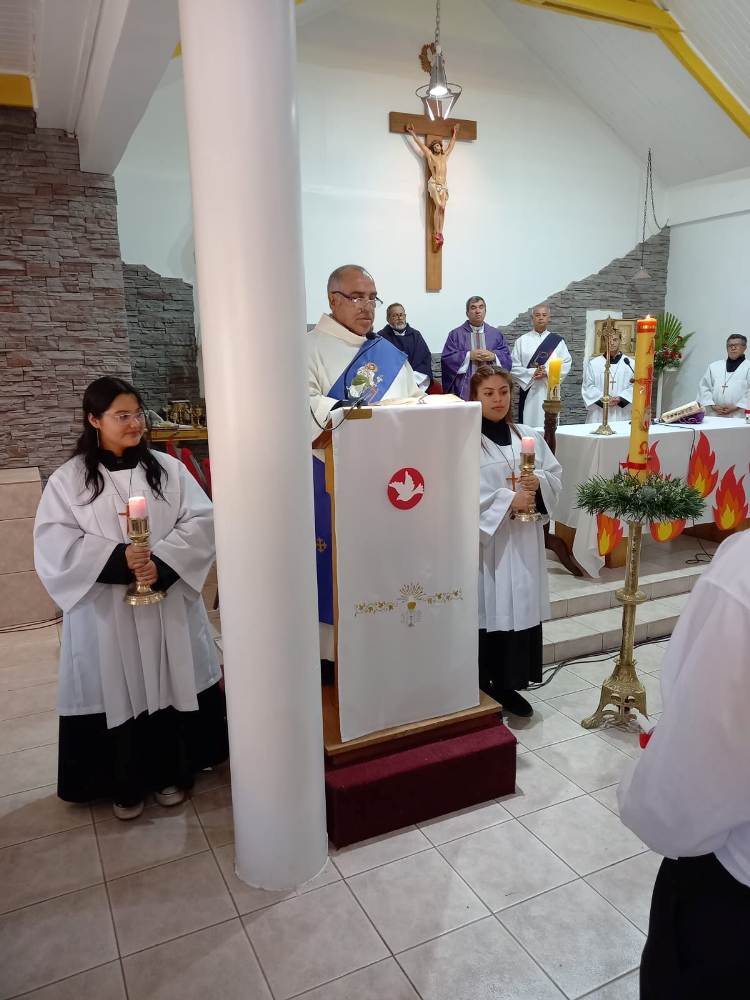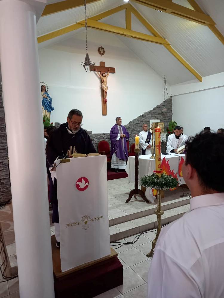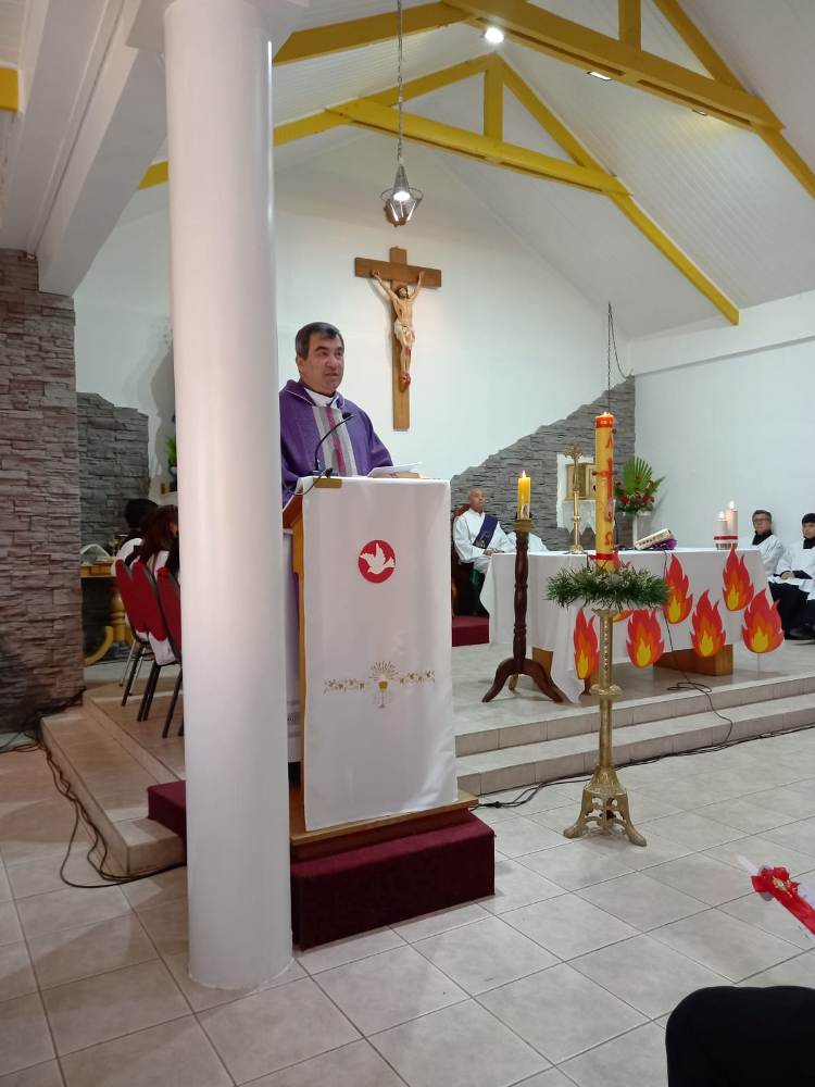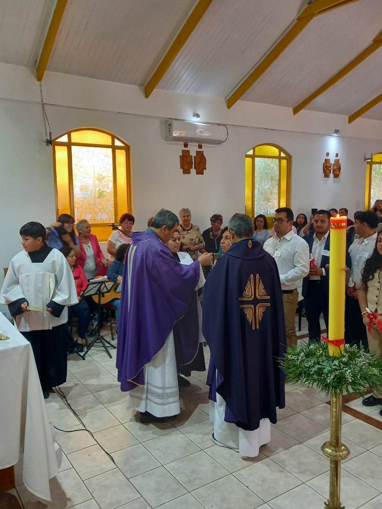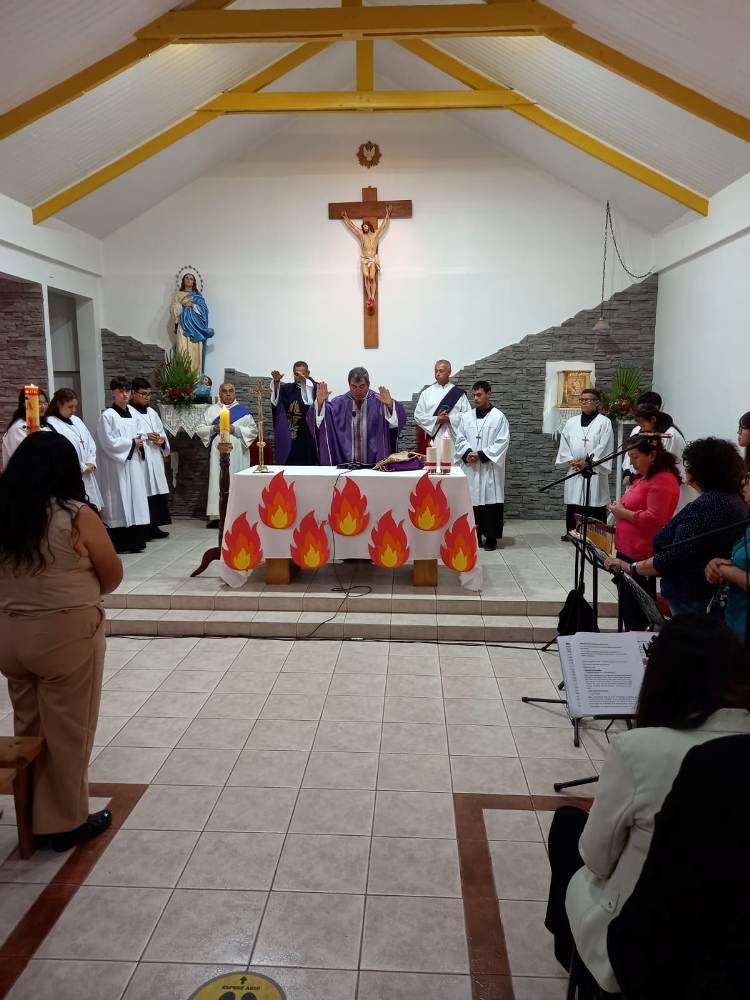 La Santa Misa fue presidida por el Vicario General, Presbítero Juan Andrés Basly Erices, quien, en nombre del obispo diocesano, impuso las manos y ungió con el Santo Crisma a los jóvenes, confirmándose en su fe y compromiso con Cristo y su Iglesia. celebración que fue acompañado por el párroco Marcos Salort Soto y los diáconos.
