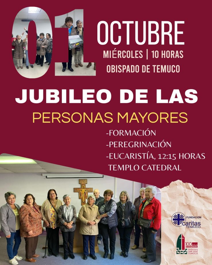 En el marco de la celebración del Centenario de la Diócesis San José de Temuco, se invita con alegría y gratitud a todos los adultos mayores de nuestras comunidades al Jubileo de las Personas Mayores, que tendrá lugar el próximo miércoles 1 de octubre.