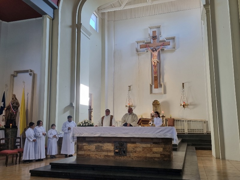 En el Templo Catedral para celebrar la solemnidad de la Asunción de la Virgen María, una de las fiestas más significativas del calendario litúrgico. La Santa Misa, presidida por monseñor Jorge Concha Cayuqueo, OFM, junto al Pbro. Juan Andrés Basly Erices, vicario general y el R.P. Fabián Husto, C.M.F , destacó el valor de la vida consagrada y el comprometido servicio al prójimo durante la Eucaristía de este 15 de agosto. Particularmente agradeció a los consagrados a religiosos y religiosas por su trabajo en hospitales, colegios y en la atención de enfermos, han tenido en María Virgen, un ejemplo de servicio y amor, a tantos hermanas y hermanos.