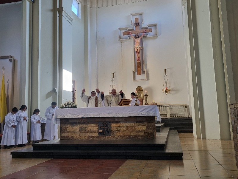 Al finalizar la Eucaristía, la comunidad se unió en la oración del Centenario de la Diócesis, rezo de todos los fieles de seguir caminando juntos en la fe, guiados por el ejemplo de María y fortalecidos por la presencia constante de los consagrados en la vida de la Iglesia, oportunidad para renovar nuestro compromiso de ser, como María, testigos fieles del amor de Dios en el mundo.