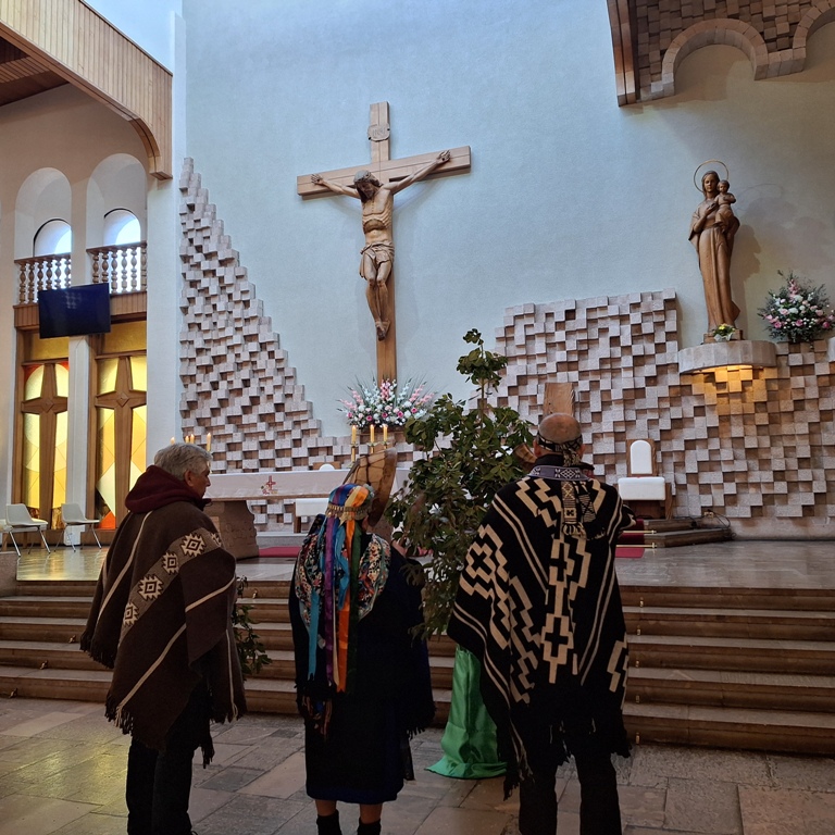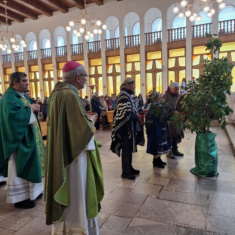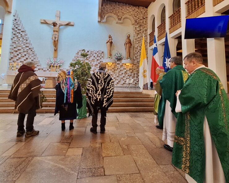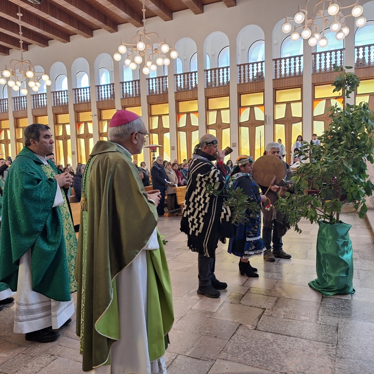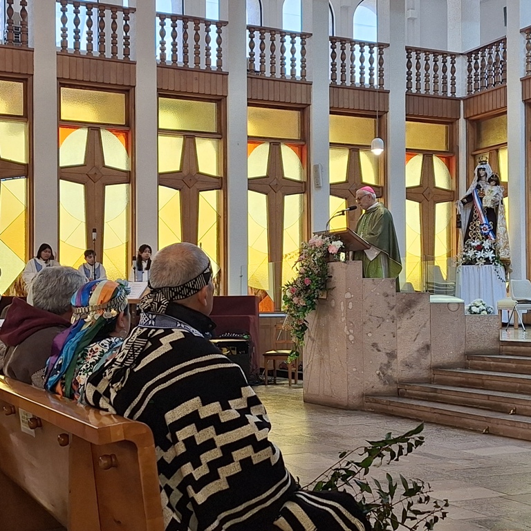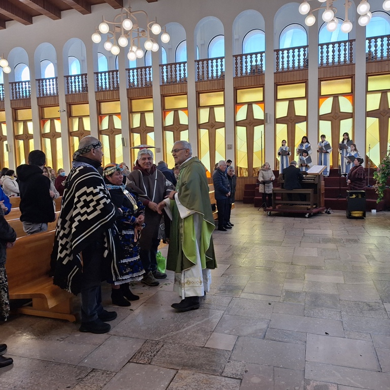 El domingo 25 de agosto, en el marco del Día de Oración por los Pueblos Originarios, en diversos lugares de la Diócesis de San José de Temuco, se celebró este día. En el Templo Catedral, la emotiva celebración fue presidida por monseñor Jorge Concha Cayuqueo, OFM, acompañado por el vicario general, Pbro. Juan Andrés Basly Erices, y el diácono Cristian Gutiérrez.