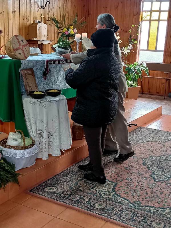 Como un gesto de profunda espiritualidad, posteriormente, hermanos del pueblo mapuche donde nuestra lagmien Silvia Llanquileo Machi de la comunidad de Nienoco junto a don Rigoberto Queipul de la comunidad Conoco, acompañados por el obispo, presbítero y diácono, elevaron una oración (llellipun) en representación del pueblo mapuche católico, una oración elevada a Dios, simbolizando la unión de la fe cristiana con la tradición ancestral y sellando así una celebración que unió corazones y culturas bajo la mirada amorosa de Dios.