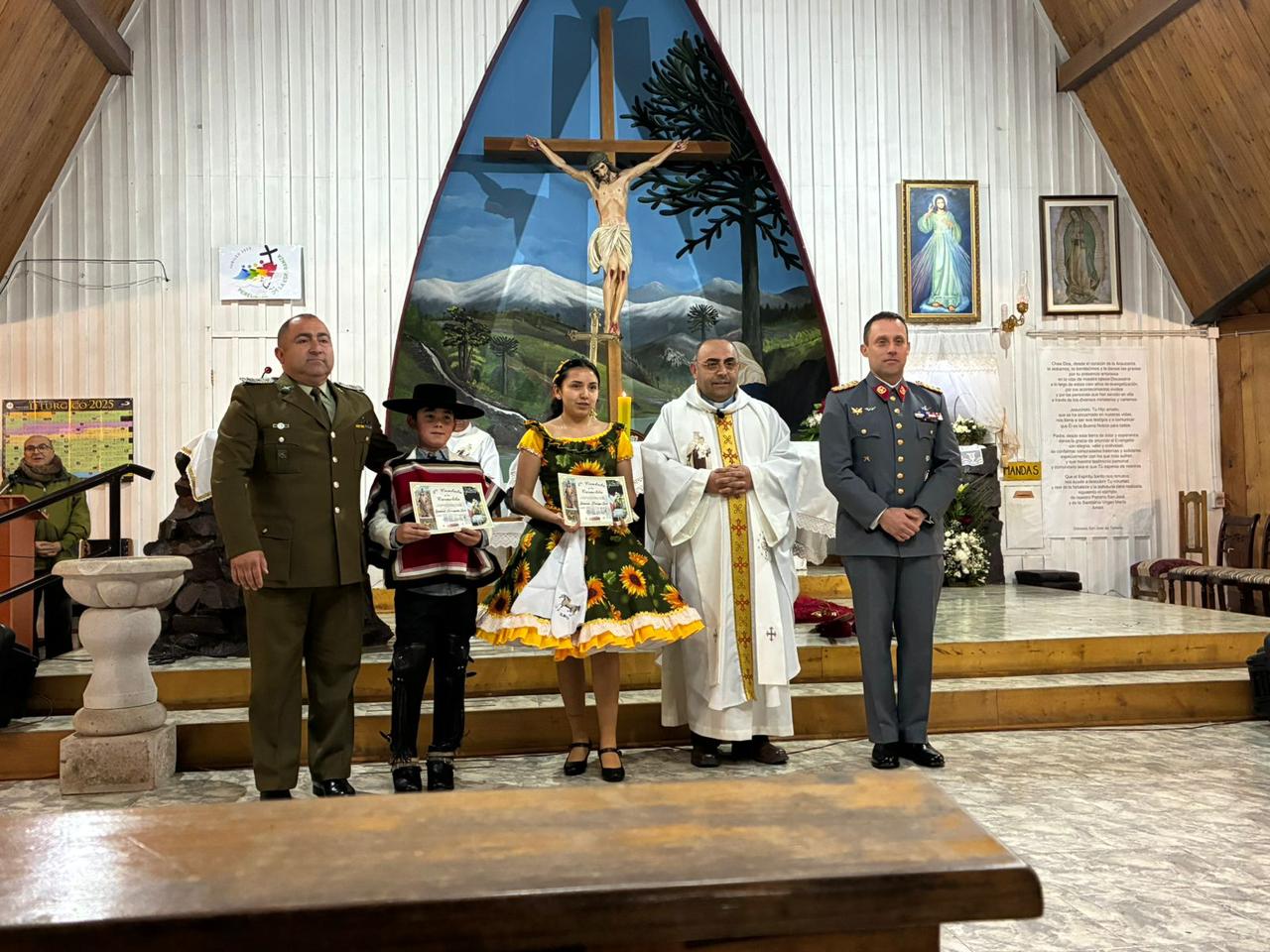 La fiesta culminó con la Santa Misa celebrada en la capilla Virgen del Carmen de Pichipehuenco y luego en el templo parroquial de Lonquimay, donde una delegación del Ejército de Chile y Carabineros acompañó a la comunidad.