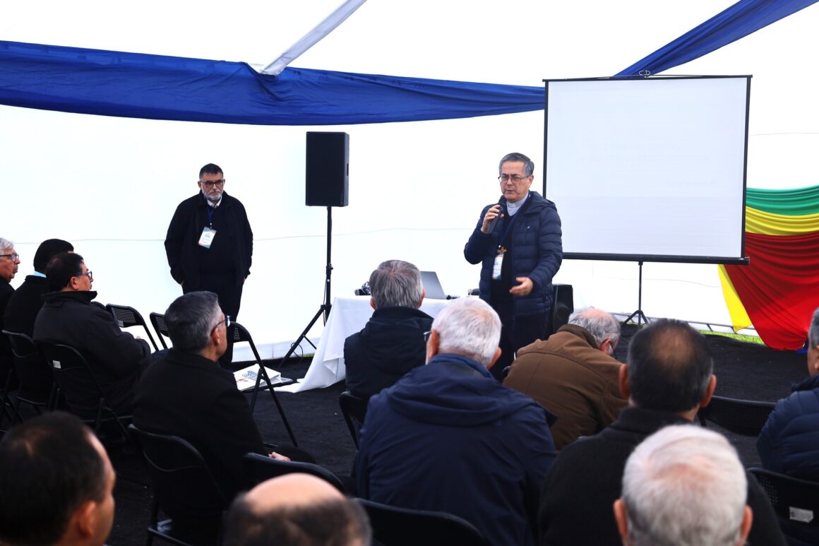 En estos momentos se desarrolla el tema “Tensiones en nuestro Ministerio Sacerdotal”, guiado por el Pbro. Larry Yévenes, SJ., quien explicó que “tiene como objetivo hablar de las tensiones propias del Ministerio Sacerdotal y cómo logramos resolverlas, fundamentalmente para poner en común la vida ministerial con compañeros, en un espacio de escucha. El tema es una tarea en construcción, ya que los sacerdotes van complementando lo expuesto, reflexionando en duplas y también en grupos, mezclando las diócesis”.