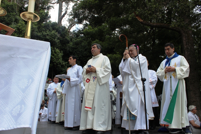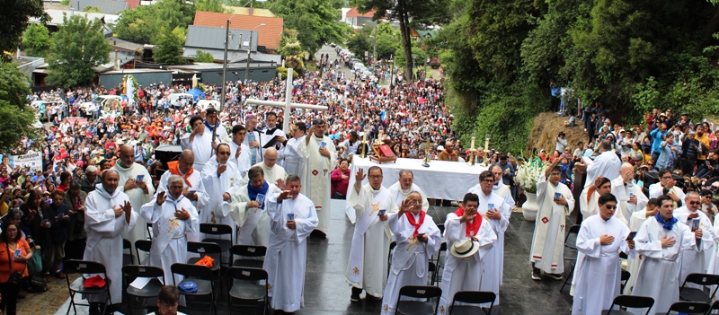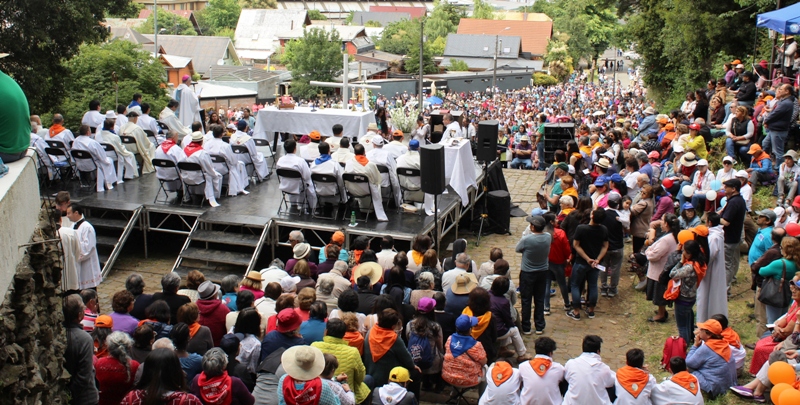 Durante el recorrido, cientos de fieles saludaban desde sus casas, departamentos, automóviles, a los peregrinos que con mucho júbilo y devoción mariana, se dirigían hasta la Gruta del Cerro Ñielol, donde aún más personas, esperaban la llegada de la imagen de Nuestra Madre celestial, donde el Obispo presidió la Santa Eucaristía, señalando que: “Hemos peregrinado una vez más desde nuestras comunidades, para testimoniar nuestra fe en Jesucristo y en su Madre Santísima. Lo hacemos en medio de una crisis social de proporciones. Los acontecimientos vividos son motivo de gran preocupación, tanto por sus causas como por su desarrollo y sus efectos”.