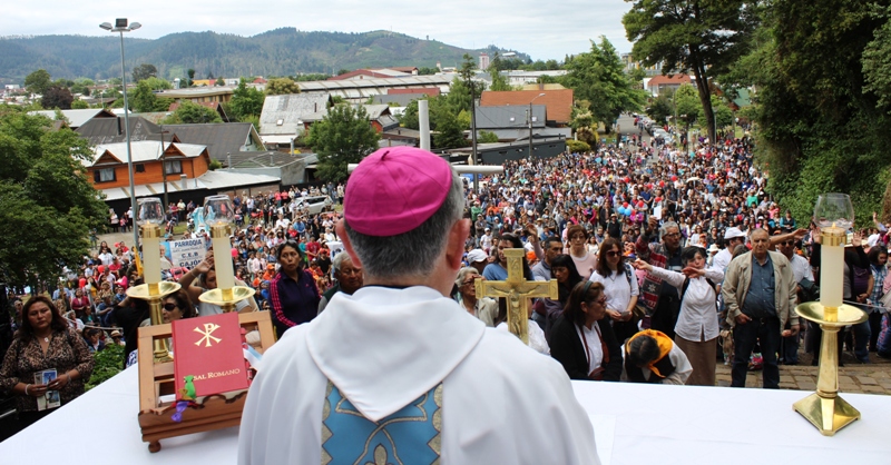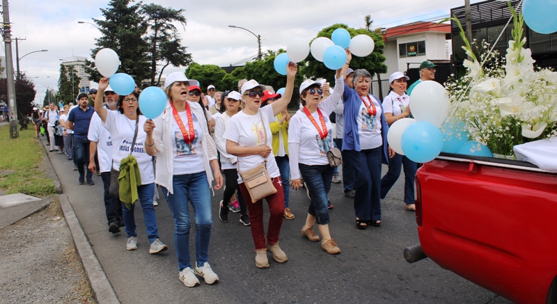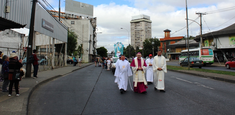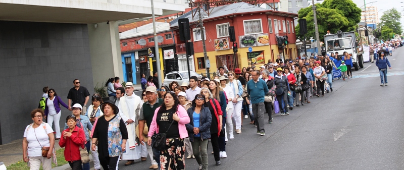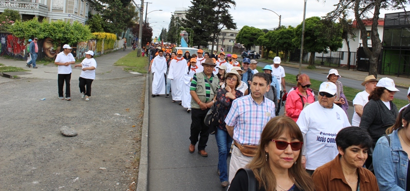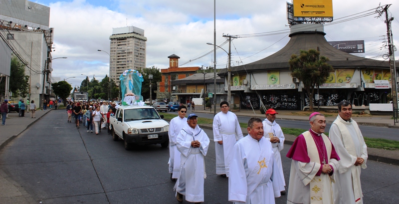 Una extensa columna de cientos de feligreses de todas las parroquias de los decanatos Temuco norte y sur de la diócesis San José de Temuco junto a monseñor Héctor Vargas Bastidas, recorrió céntricas calles y avenidas de la capital regional de La Araucanía, en la festividad de la Santísima Virgen María, caminar que fue acompañado de cantos y oración para agradecer y pedir su protección maternal.