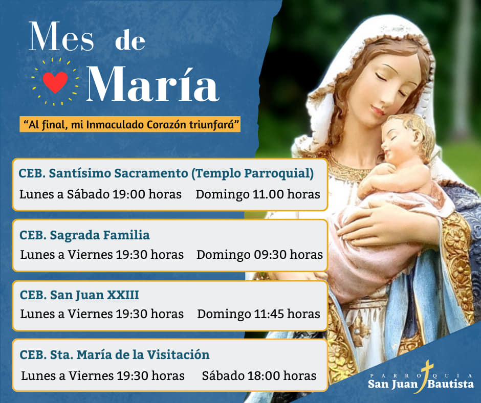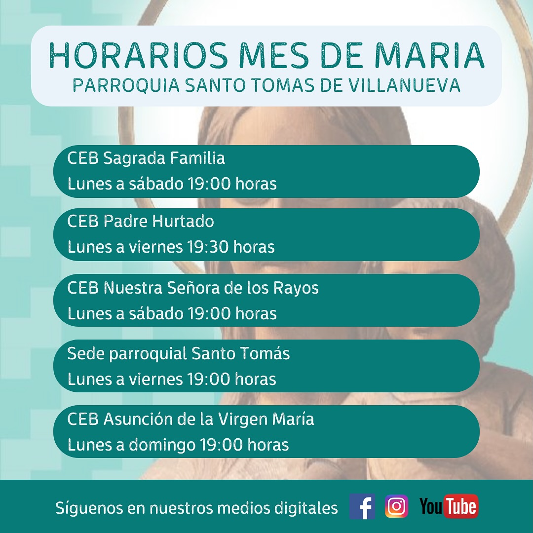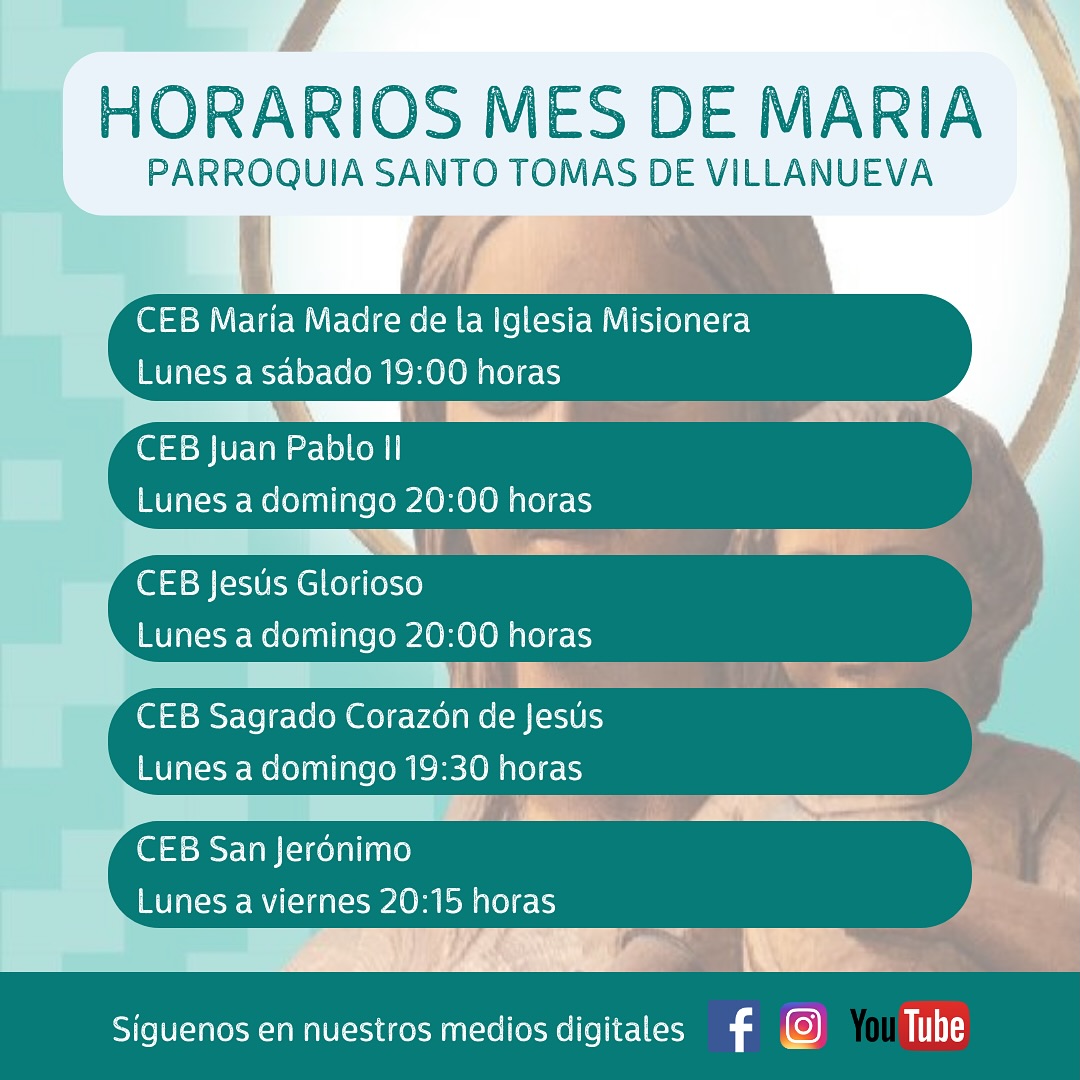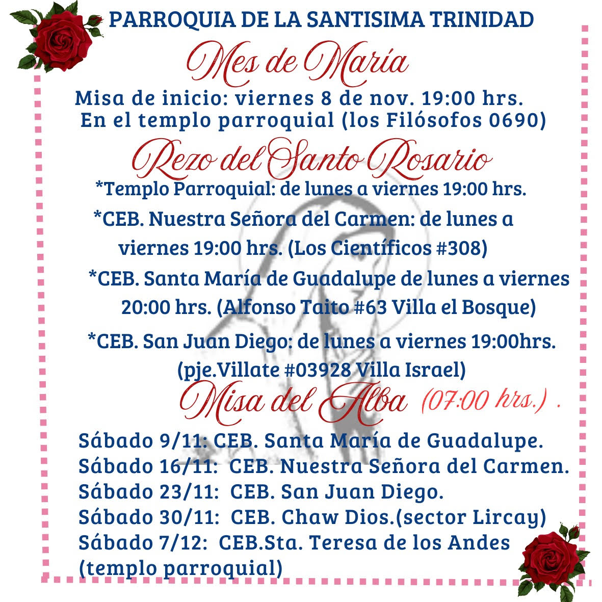 Informamos los horarios del Mes de María, esta información está siendo actualizada y recopilada vía WhatsApp, Facebook, Correos, etc. Agradecemos enviar sus noticias e informaciones al correo periodistaobispadotco@obispadotemuco