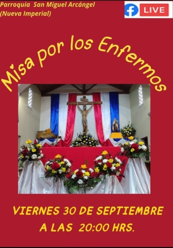 El viernes 30 de septiembre, a las 20 horas, se invita a la Santa Misa por los enfermos en la parroquia SAN MIGUEL ARCÁNGEL de la comuna de Nueva Imperial.