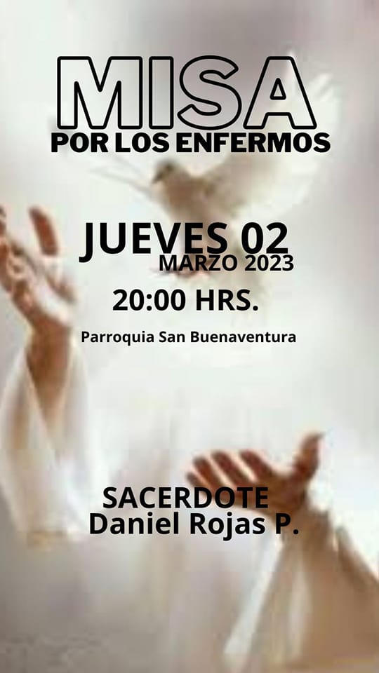 El jueves 02 de marzo, a las 20 horas, la parroquia SAN BUENAVENTURA de Angol, celebra la misa por los enfermos.