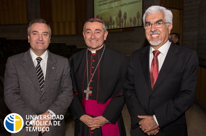 Por su parte, el Gran Canciller Héctor Vargas motivó a la comunidad a ser una “Universidad diferente, viviendo y transmitiendo los valores de la Iglesia Católica y Jesucristo”. Añadiendo que para él asumir esta responsabilidad “es un desafío muy grande, puesto que la Universidad ha ido creciendo y consolidándose en forma ostensible, siendo de gran importancia para la región, siempre con el sello del servicio y la vocación, poniéndose a disposición de La Araucanía”.