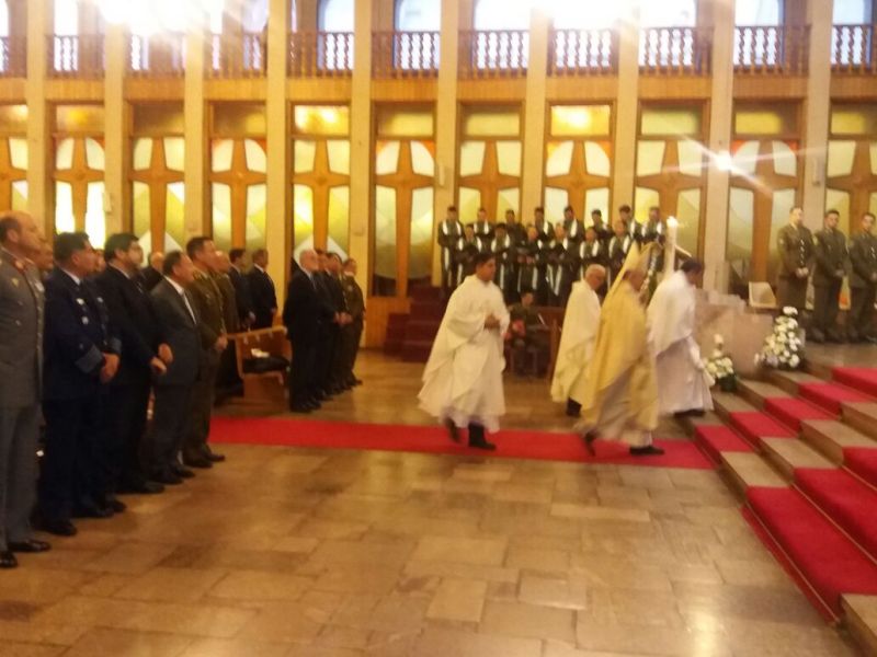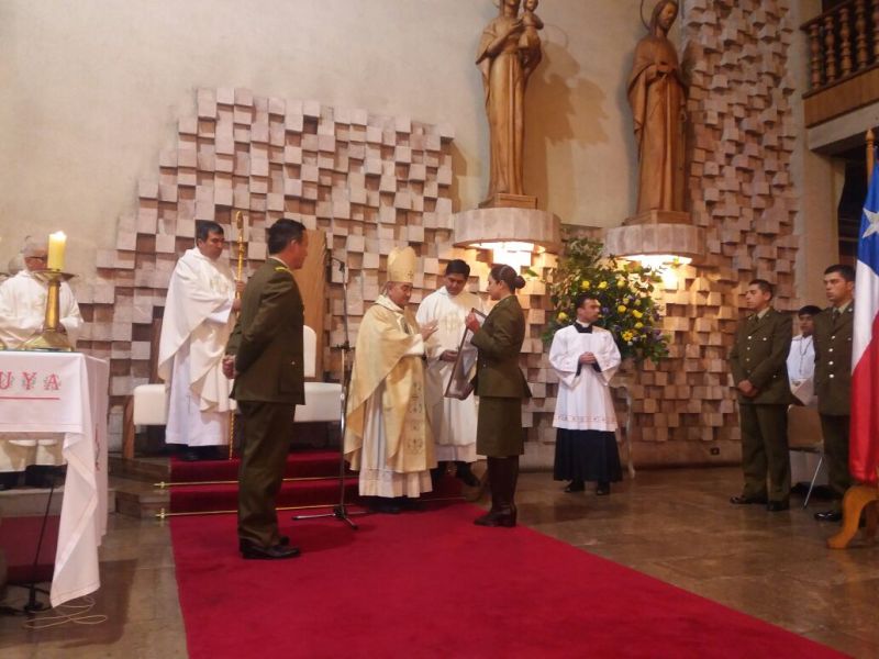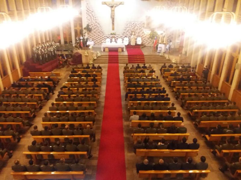 Concluyó su homilía, señalando que: “Esta exigencia formativa brota desde su dignidad como personas y de su identidad como Carabineros, en virtud del trabajo que realizan, de vuestro rol en la sociedad nacional y del anhelo, tan arraigado en los miembros de esta Institución, por contribuir a lograr una sociedad más justa, en la cual reinen el orden, la tranquilidad, la seguridad y la calidad de vida (…) Es por ello que debemos orar insistentemente por nuestros Carabineros, invocar la protección de Dios sobre ellos, para que así continúen llevando a cabo la misma misión de Jesucristo, quien proclamó que no había venido a este mundo para ser servido, sino para servir y dar la vida en rescate por muchos”.