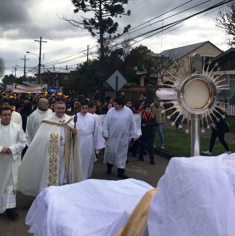 Cabe destacar, que durante la mañana la animación contó con la participación del cantante Pablo Cifuentes, también el grupo musical Fuerza Mercedaria, Araucanta y Flecha del Salvador, quienes entusiasmaron y brindaron variadas dinámicas a todos los asistentes. Luego, se llevó a cabo el almuerzo y, posteriormente, los jóvenes junto a nuestro Obispo monseñor Héctor Vargas Bastidas en compañía de sacerdotes y diáconos, en una hermosa procesión recorrieron las céntricas calles de la comuna, con la Custodia que porta a Jesucristo Misionero Pan de Vida, que durante estos meses recorre todas las parroquias.