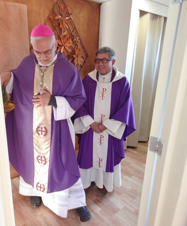 Monseñor presidió la Eucaristía, junto al Presbítero Misael Reyes Lillo y el Diácono Roberto Jaque Hidalgo, con una asamblea que supera los 100 fieles. En la oportunidad Monseñor Jorge, bendijo la construcción de la Sacristía, la reparación del Templo y también el nuevo equipo de sonido, todo esto gracias a la colaboración y cooperación de la comunidad Católica de Mininco, quienes trabajaron arduamente para recaudar el dinero con venta de plato único, rifas, campaña del sobre y donaciones voluntarias, la que permitió lograr el objetivo propuesto. El equipo de audio fue donado por una familia de la comunidad.