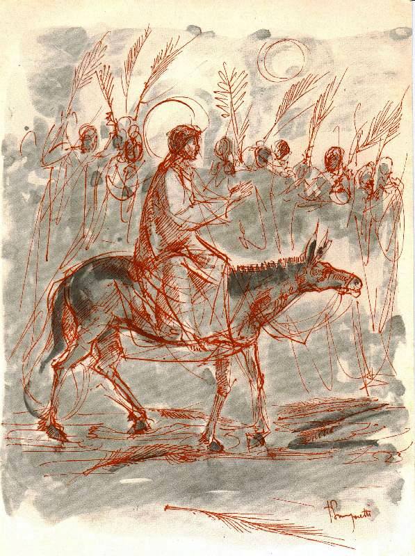 Esta celebración tiene como un doble sabor, dulce y amargo, es alegre y dolorosa, porque en ella celebramos la entrada del Señor en Jerusalén, aclamado por el pueblo y sus discípulos como rey, al mismo tiempo que se proclama solemnemente el relato del evangelio sobre su pasión. Por eso nuestro corazón siente ese doloroso contraste y experimenta en cierta medida lo que Jesús sintió en su corazón en ese día, el día en que se regocijó con sus amigos y también lloró sobre Jerusalén.