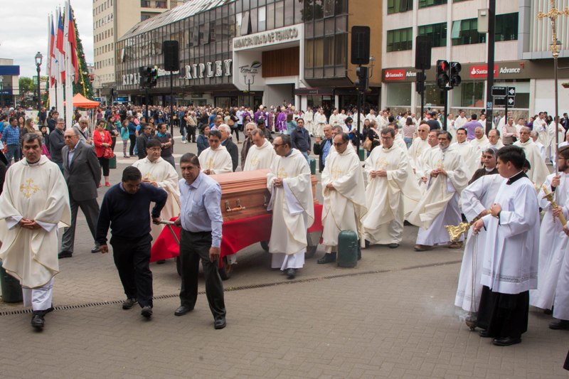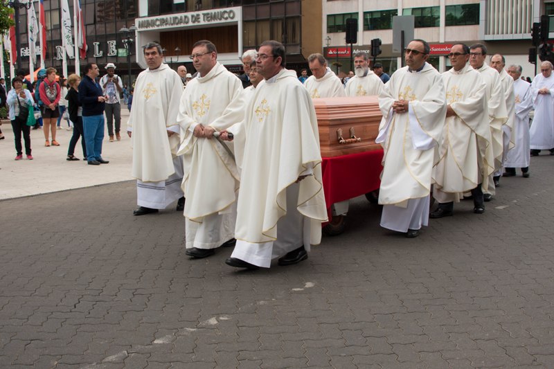 “Agradecemos a Dios habernos regalado tantas bendiciones y gracias a través de este Pastor, que, haciendo vida su lema episcopal, nos demostró hasta el final de sus días que: “ No vino a ser servido, sino a servir”. Fue un gran obispo, “pastor con olor a oveja como gusta decir el papa Francisco. Inteligente, abierto, generoso, transparente, cercano a la gente. Nada de lo humano estuvo ausente de su ministerio. Defensor apasionado de los derechos humanos, especialmente del pueblo mapuche. Siempre desde la fe y la persona de Jesucristo, a quien amó entrañablemente. Gastó su existencia al servicio de los demás, particularmente de los más pobres y humildes. Fue un gran amigo y maestro en el ministerio pastoral de otros obispos”.