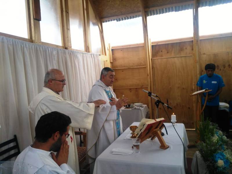 Al terminar los trabajos de construcción el sábado 12 de enero, el obispo diocesano Monseñor  Héctor Vargas, presidió la primera Eucaristía en la nueva capilla, agradeciendo el apoyo y esfuerzo de toda la comunidad y de los jóvenes de “Capilla – País”.