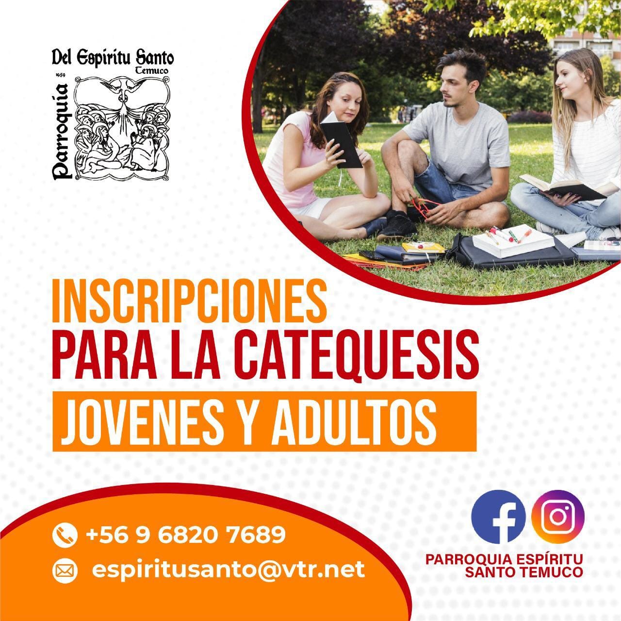 DiócesisNoticias P. ESPÍRITU SANTO: Proceso de inscripción de Catequesis Diócesis de Temuco8 junio, 20211 min. Para jóvenes y adultos. Total 0 Shares Share 0 Tweet 0 Share 0 Share 0 Share 0 Pin it 0 UNIDAD DE ACOMPAÑAMIENTO ESPIRITUAL impartirá curso de capacitación Domingo de Oración por la Iglesia Perseguida
