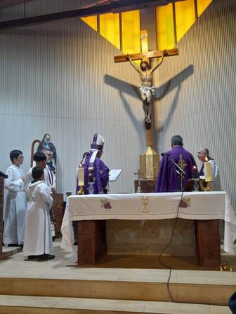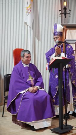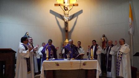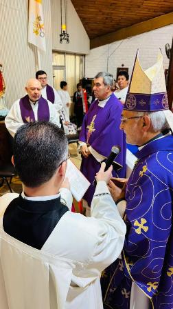 La celebración fue presidida por el obispo de la Diócesis de San José de Temuco, monseñor Jorge Concha Cayuqueo, OFM, quien estuvo acompañado por el vicario general, padre José Manuel González; el vicario pastoral, padre Rodrigo Aguilar Gómez; el decano de Victoria, padre René Riquelme Fuentes; el vicario judicial, padre Carlos Hernández junto a sacerdotes, diáconos y numerosos fieles.