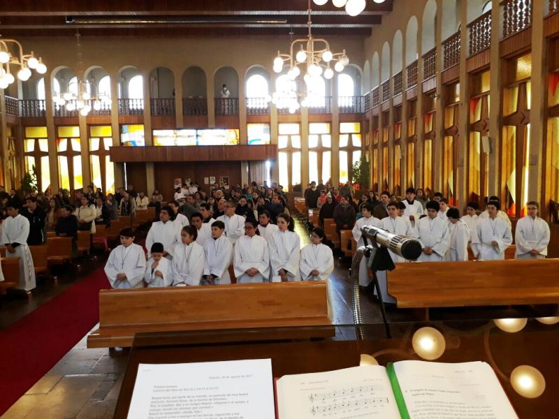 El sábado 26 de agosto, en el Templo Catedral, alrededor de 120monaguillos que se desempeñan como Servidores del Altar, de distintas parroquias y decanatos, como Imperial, Chol Chol, Lautaro, Traiguèn, Carahue y Temuco, se congregaron en este Primer Encuentro Diocesano de Monaguillos.