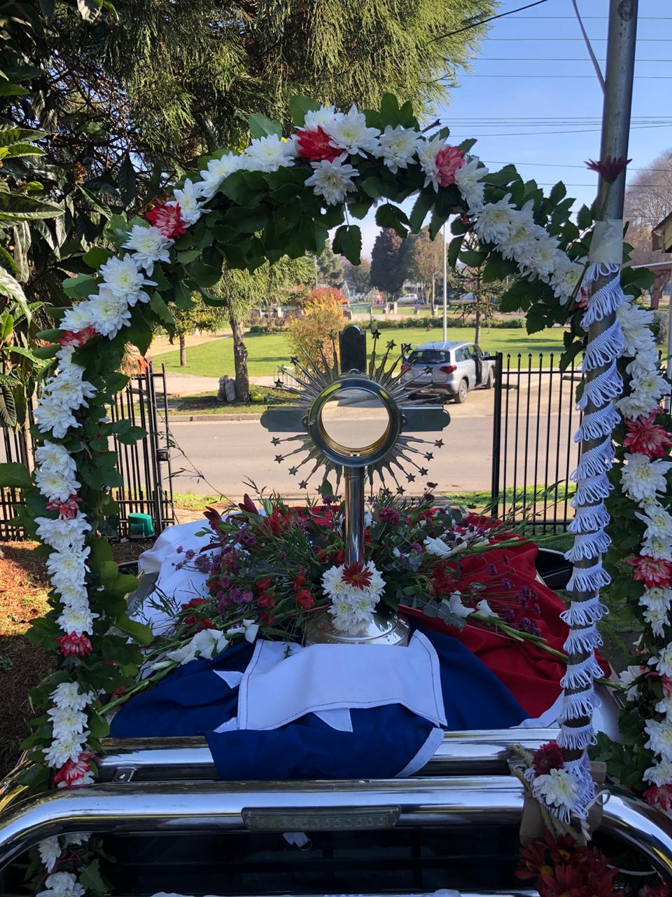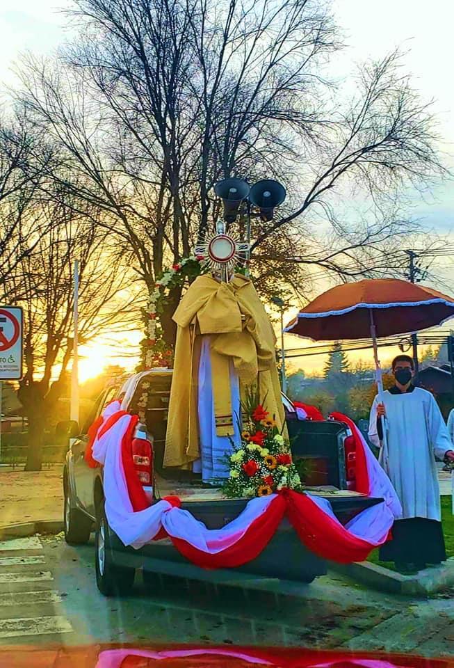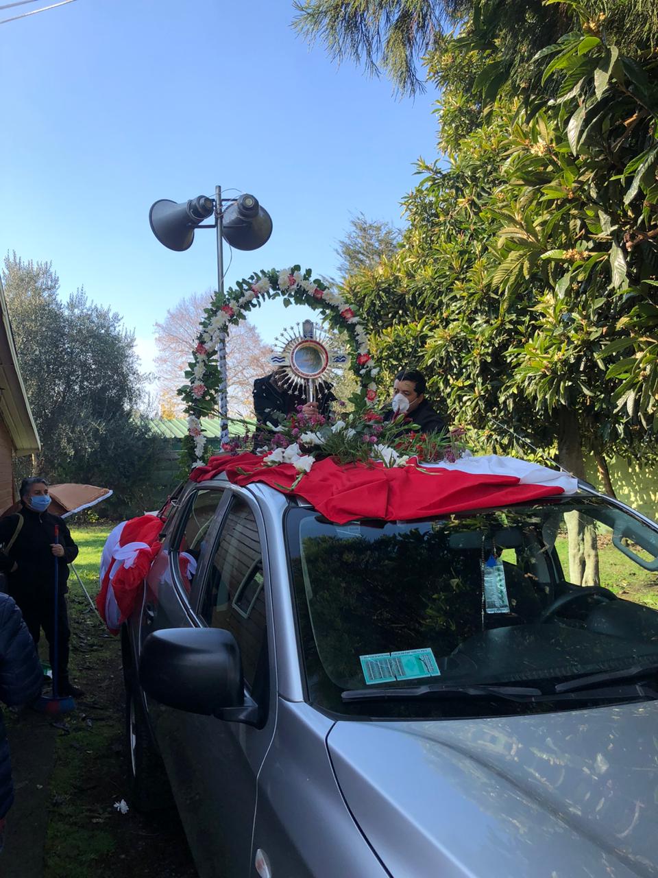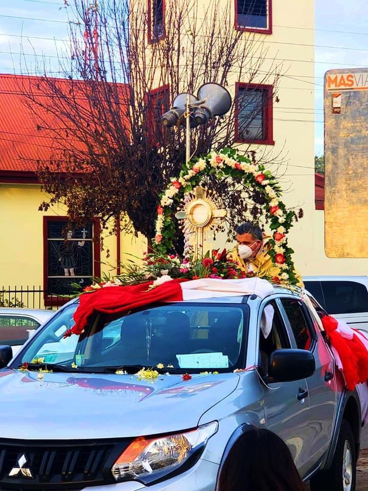 En la solemnidad del Corpus Christi, la comunidad parroquial de Jesús de la Misericordia de Labranza, efectuó una Procesión -Caravana de autos para esta celebración, que recorrió las principales calles, donde los fieles esperaban a Cristo Sacramentado con mucha devoción y alegría, donde saludaban a su paso con carteles, globos y pañuelos blancos.
