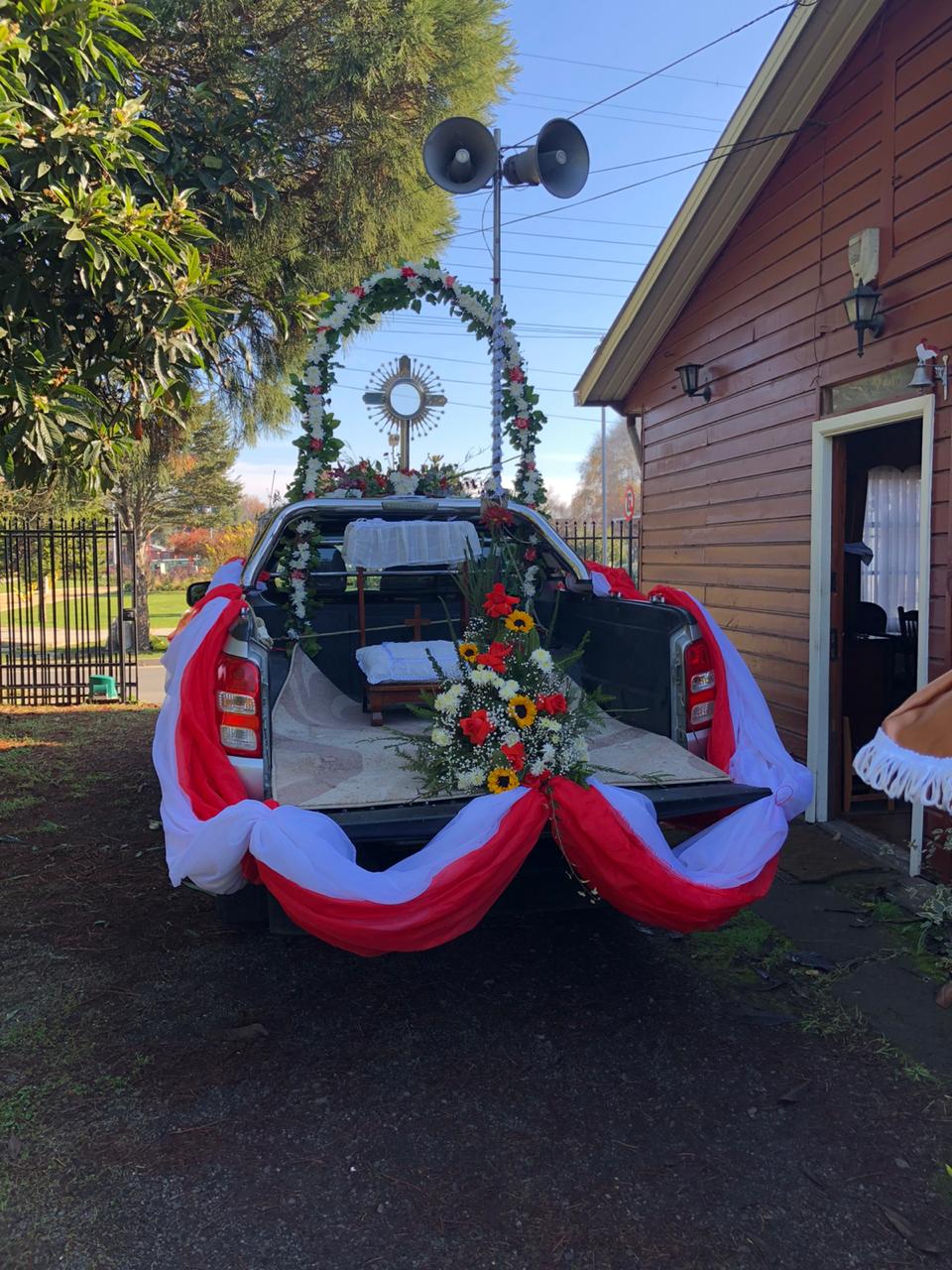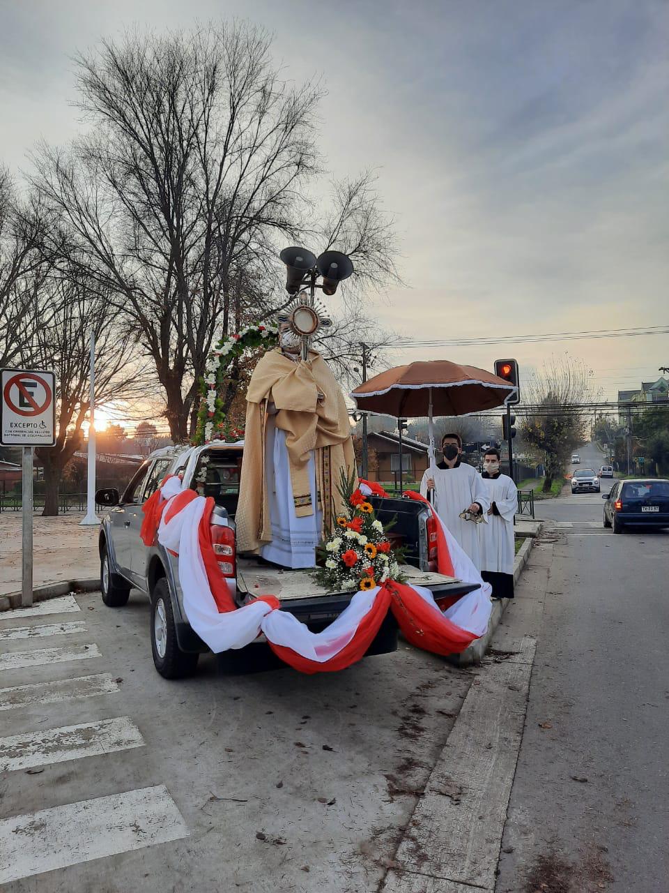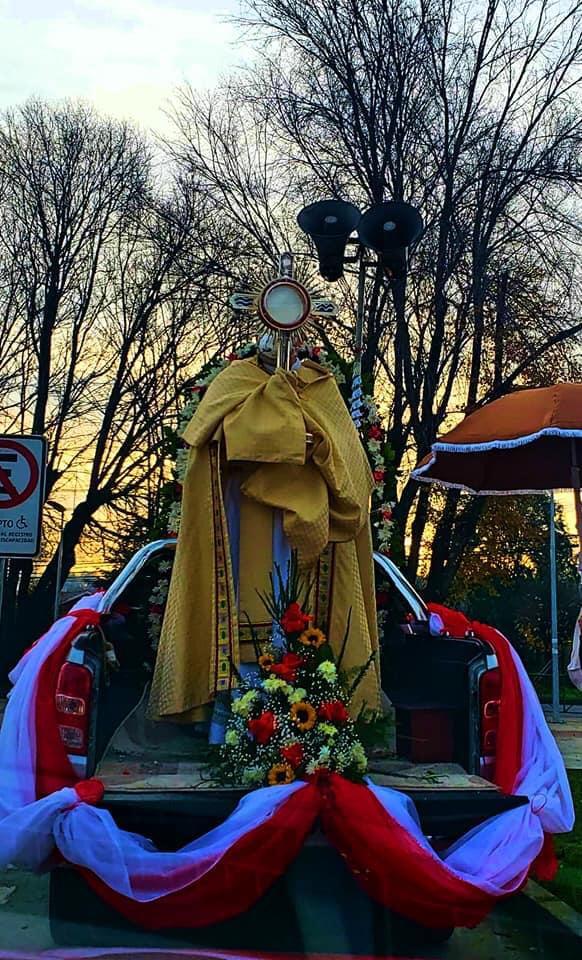 En la solemnidad del Corpus Christi, la comunidad parroquial de Jesús de la Misericordia de Labranza, efectuó una Procesión -Caravana de autos para esta celebración, que recorrió las principales calles, donde los fieles esperaban a Cristo Sacramentado con mucha devoción y alegría, donde saludaban a su paso con carteles, globos y pañuelos blancos.