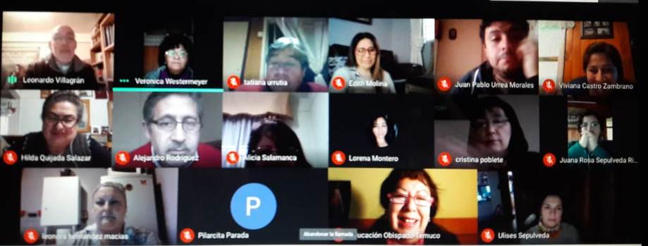 El equipo de la Vicaría para la Educación del Obispado de Temuco, se ha continuado reuniendo con comunidades de Profesores de Religión. En esta oportunidad el encuentro convocó a docentes de las comunidades educativas de Lautaro, Labranza, Pillanlelbún, Perquenco y Temuco, instancia cuyo propósito es retomar la comunicación, compartir testimonios de su situación personal y profesional en tiempos de pandemia, rezar juntos y atender los nuevos desafíos que se presentan en el ámbito laboral en este tiempo.