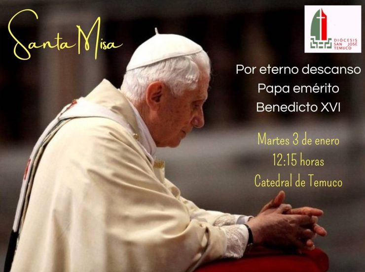 “Es una noticia muy triste, que nos conmovió a todos, pero el Señor así lo quiso en este tiempo de navidad y lo invitó a participar de su pascua en la vida eterna. Dejó un gran legado para nuestra Iglesia. Invitamos a participar de la Santa Misa el martes 3 de enero, a las 12:15 horas, en Catedral de Temuco. El Papa Benedito fue un hombre muy humilde, un servidor de Iglesia, un gran teólogo, su magisterio y pontificado fue una luz para todos”, señaló el Pbro. Juan Andrés Basly