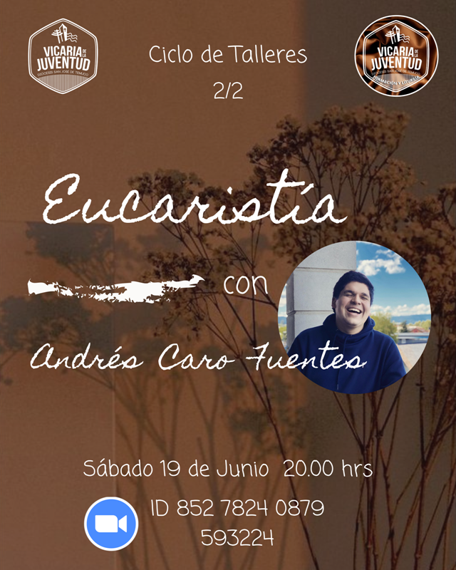 Te esperamos para el 2° Taller de “EUCARISTÍA”, el sábado 19 de junio, a las 20:00 horas por Zoom, “Esta vez conversaremos con mayor profundidad entorno a este importante sacramento, no te puedes perder este Ciclo de Talleres organizado por nuestro Equipo de Formación y Liturgia, en el cual trataremos temáticas atingentes a nuestro camino pastoral”, señala equipo VIJU.