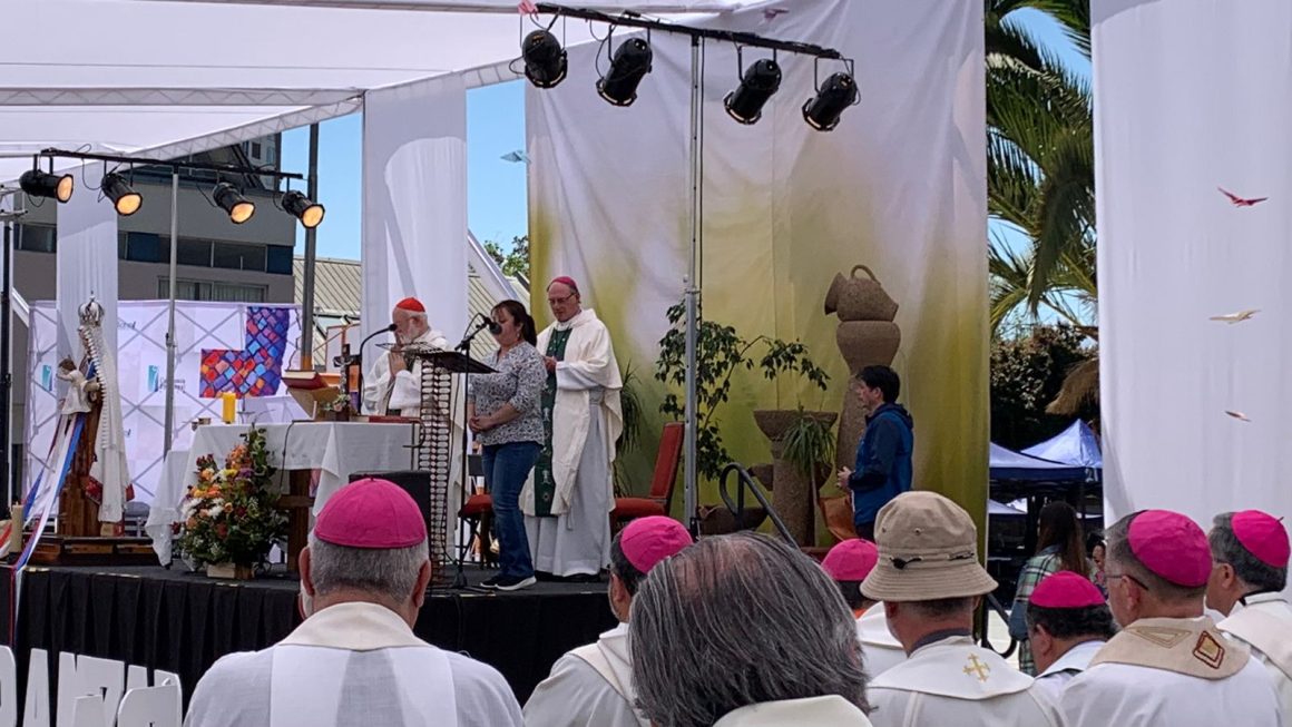 En su homilía, el cardenal Celestino Aós, agradeció lo vivido durante aI Asamblea Eclesial Nacional, que ha sido parte de un proceso en el que han participado cientos de comunidades y parroquias de todo Chile. “Estamos llamados a ser una Iglesia esperanzadora, por eso lo primero es el sano realismo para ver lo bueno, las maravillas que Dios sigue obrando ¿Cuánta gente buena hay en nuestra Iglesia, en nuestro mundo? Para mí, la Iglesia es esperanzadora porque reza. Y hemos rezado juntos. Felicito a cada uno de los participantes por esto. Una Iglesia que reza, que celebra los sacramentos, que proclama la palabra de Dios, que no se limita a simples ritos, es agua que purifica y sana”, dijo.
