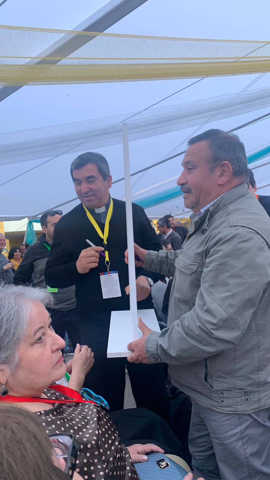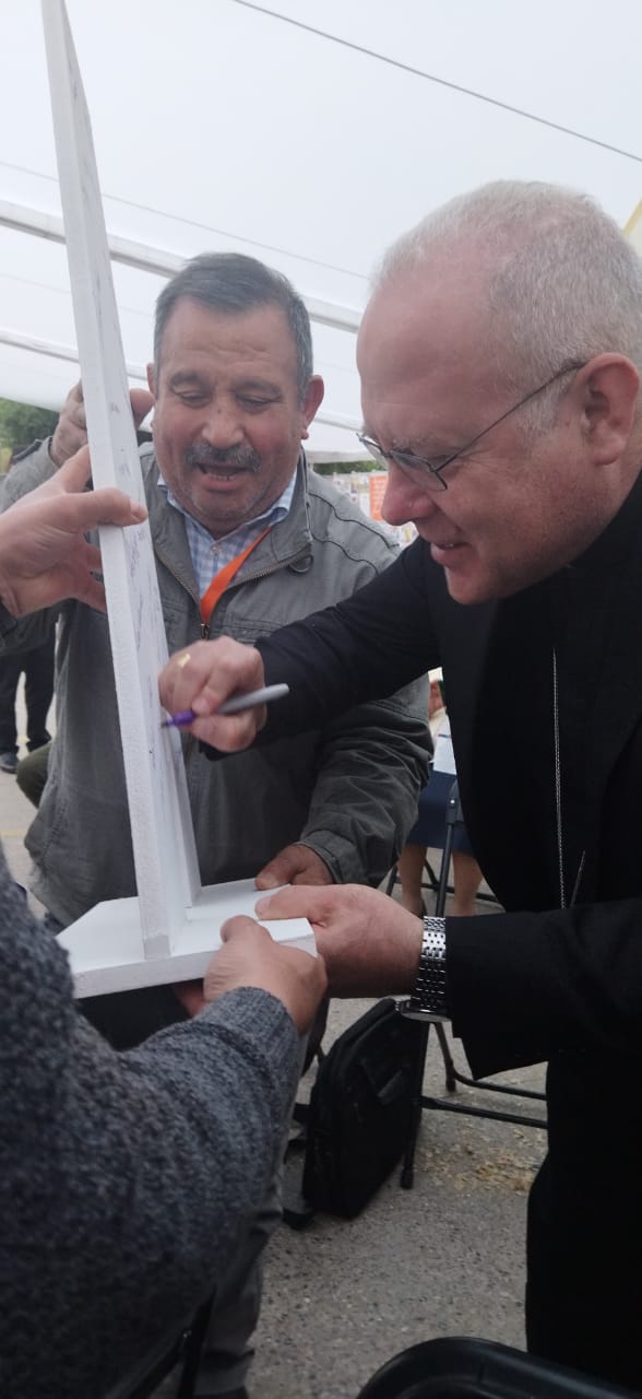 En medio de la celebración, y tras la homilía, el obispo Alberto Lorenzelli; la Delegada para la Pastoral General de San Felipe, la hna. Nelly León; la directora del Consejo Nacional de Prevención de Abusos y Acompañamiento a las Víctimas, Pilar Ramírez; y el representante de la Delegación de Linares, Miguel González; se acercaron al altar con una vela encendida donde realizaron un signo de perdón por las víctimas de abuso sexual en la Iglesia. El momento fue acompañado por el relato del secretario general de la Conferencia Episcopal, Sergio Pérez de Arce, quien expresó “A los pies de nuestra madre… Nuestro proceso de discernimiento eclesial ha estado ligado fuertemente a la crisis de los abusos sexuales en la Iglesia. Hemos sido convocados para seguir a Jesús, siervo de la misericordia y mansedumbre que no apaga la mecha que aún arde ni quiebra la caña trizada, como lo anunció el profeta Isaías. Sin embargo, esta mecha fue apagada, y no lo vimos, no lo escuchamos, no lo denunciamos y la vida de muchos y muchas quedó quebrada”.