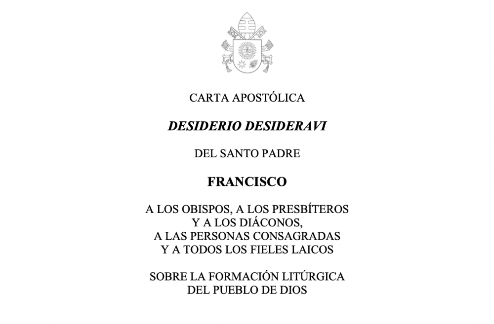 En la Solemnidad de los Apóstoles Pedro y Pablo (29 de junio de 2022), el Papa Francisco ha publicado la Carta Apostólica «Desiderio desideravi» sobre la formación litúrgica del Pueblo de Dios, un texto dirigido a obispos, presbíteros y diáconos, personas consagradas y fieles laicos.