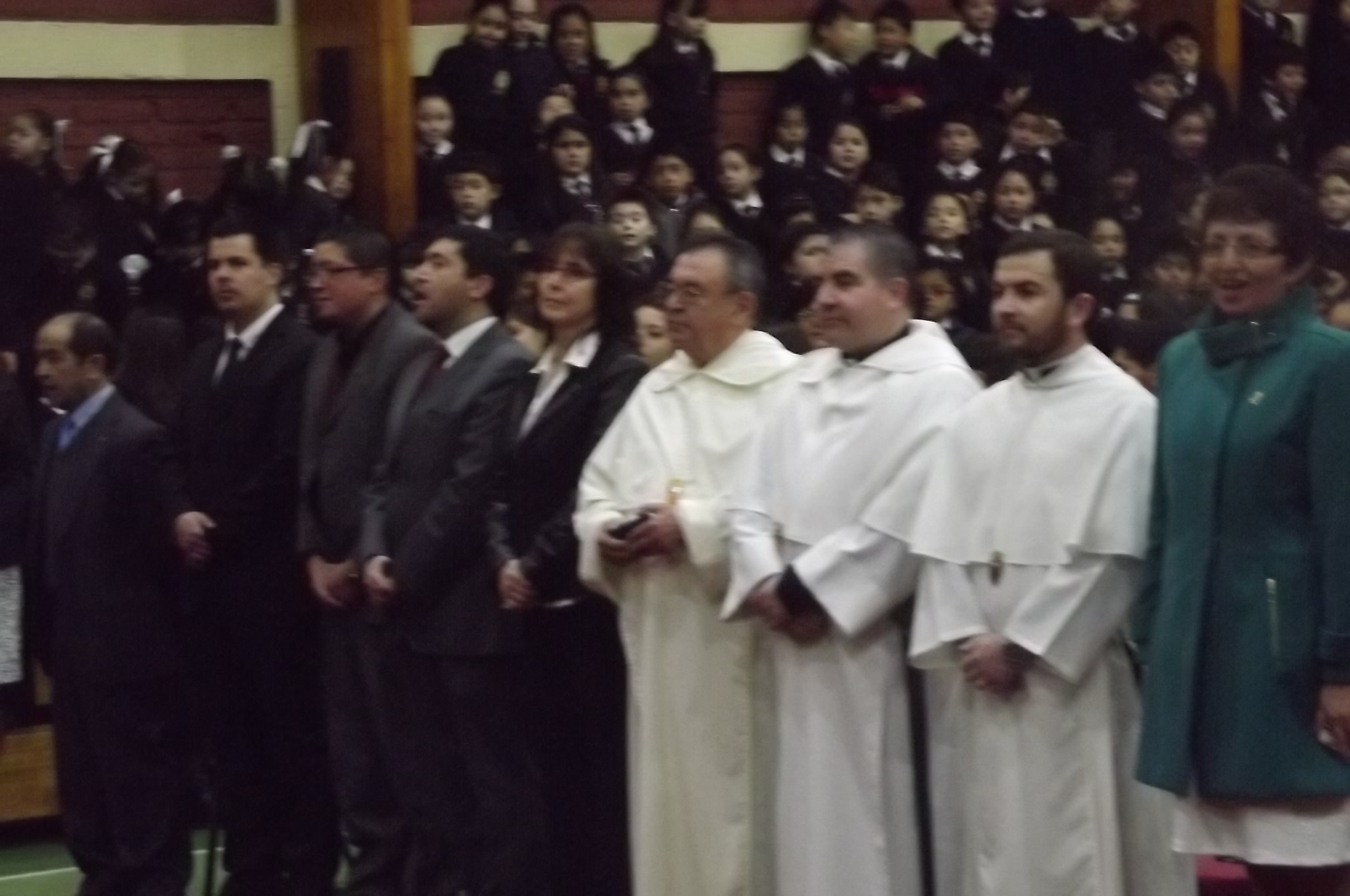 El Sacerdote estuvo acompañado, durante la ceremonia, en el gimnasio de la unidad educativa, del rector del plantel, Fray Ramón Villagrán Arias y sus hermanos religiosos, Pedro Díaz Rodríguez, Párroco de La Merced y el Vicario, Oscar Camilla Guerra; igualmente de la directora del establecimiento, Anahy Huenchullán Piutrín; Rolando Maza Rival y Carlos Senn Leiva, dirigentes del Centro de Ex Alumnos; docentes, padres y apoderados, educandos y comunidad institutana.