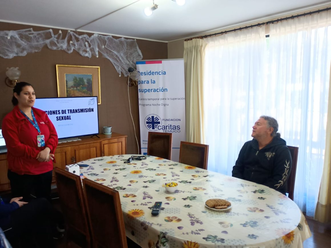 Agradecemos profundamente la colaboración del equipo de Ruta Médica y del Consultorio Miraflores por contribuir activamente al bienestar y la salud integral de los participantes, manifiesta Nataly Flores Alarcón, Encargada Residencia Superación, Fundación Caritas Temuco.