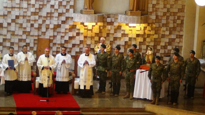 Tras la interpretación del Himno Nacional a cargo de la Banda del Regimiento Tucapel, en su homilía, monseñor Vargas señaló: “Hemos sido convocados por el Ejército para saludar y venerar a la Madre y Reina de Chile, Nuestra Señora del Carmen, Madre y Reina de Chile y Patrona Juramentada de las FF AA y de Orden, confiados en la promesa de Jesús, que nos dio a su Madre como madre nuestra. A ella les encomendaremos los destinos de esta Región y de nuestra Patria y nuestros esfuerzos por construirla como una gran nación de hermanos, en donde cada uno de sus hijos tenga pan, trabajo y alegría”.