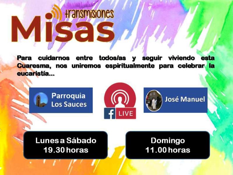 Transmisión vía Facebook Parroquia Los Sauces: Lunes a Sábado 19:30 horas y Domingo 11 horas