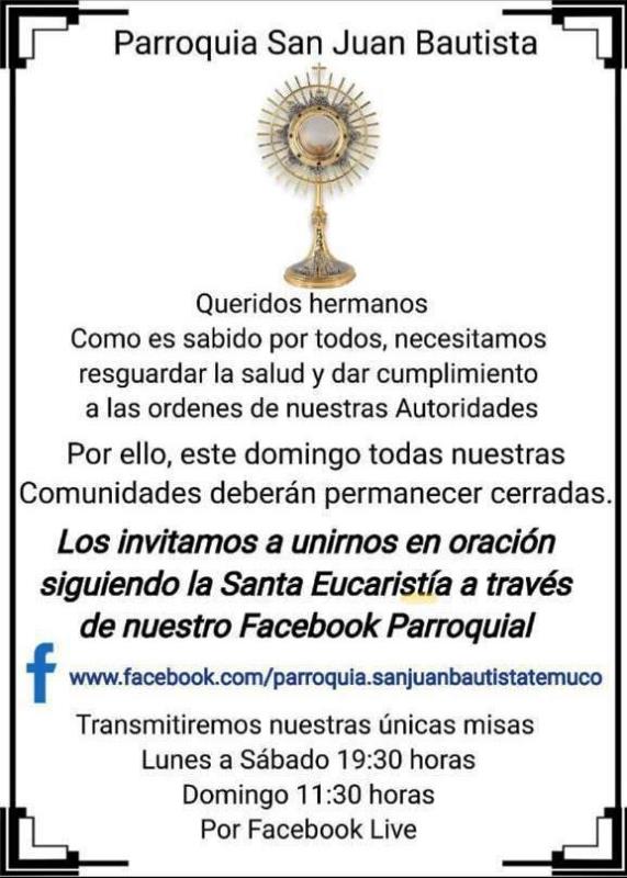 Transmisión de la Santa Misa por: www.facebook.com/parroquia.sanjuanbaustistatemuco