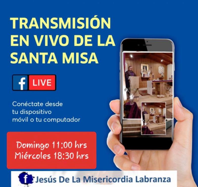 Horarios transmisión de la Santa Misa por www.facebook.com/jesusdelamisericordia.labranza