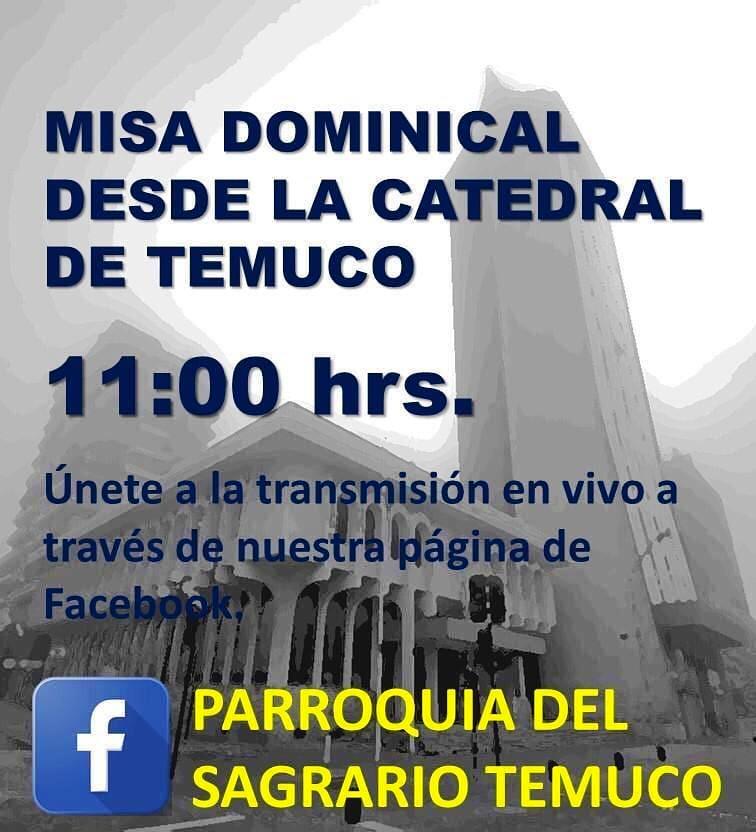 Misa dominical a las 11:00 y 12:15 horas desde la Catedral de Temuco vía Facebook: PARROQUIA DEL SAGRARIO TEMUCO