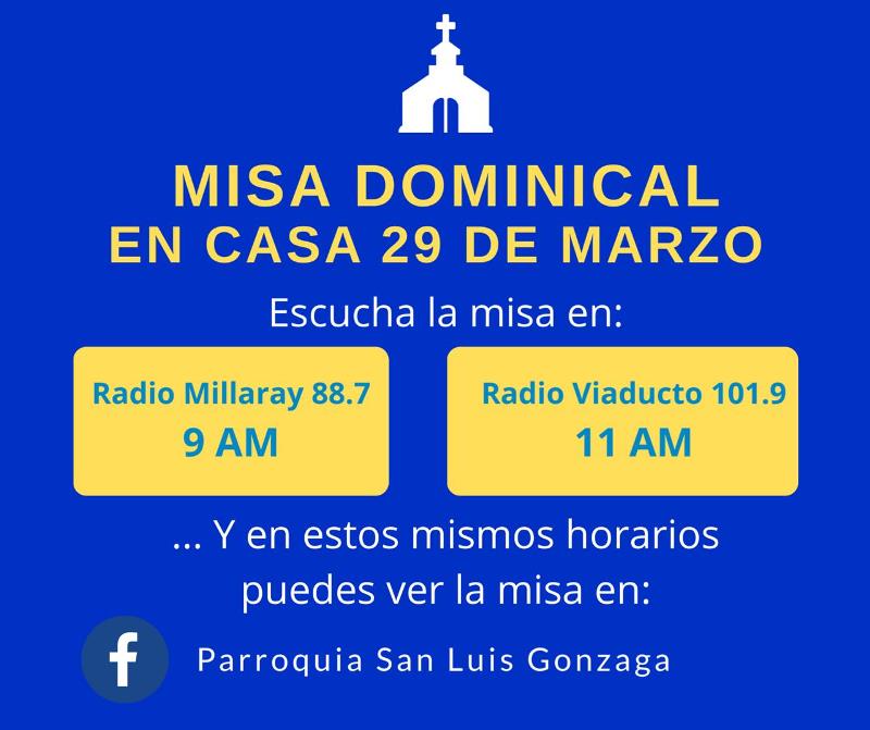 Misa transmisión en vivo: domingo 11: 30 horas. Señal On line por Facebook PJIMPERIAL