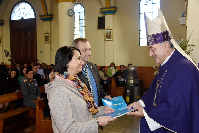 Autoridades regionales y académicas encabezadas por Monseñor Héctor Vargas, Gran Canciller de la UC Temuco, el rector Dr. Aliro Bórquez, vicerrectores, decanos, académicos, administrativos y estudiantes se reunieron en el Templo San Francisco para participar en la Eucaristía que dio inicio a las actividades de Inicio del Año Académico 2018 de la Universidad Católica de Temuco.