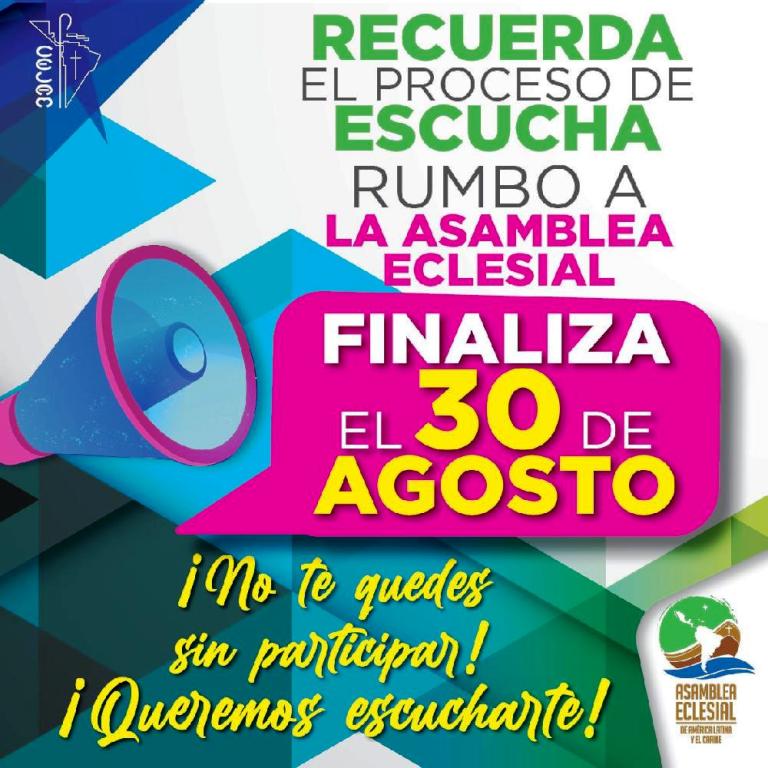 Quedan pocos días para poder sumarse al período de escucha de la Asamblea Eclesial latinoamericana. Este camino de participación abierto desde abril a todo el Pueblo de Dios que peregrina en el continente (laicas y laicos, vida religiosa, diáconos, sacerdotes, y obispos), llegará a su fin el 30 de agosto.