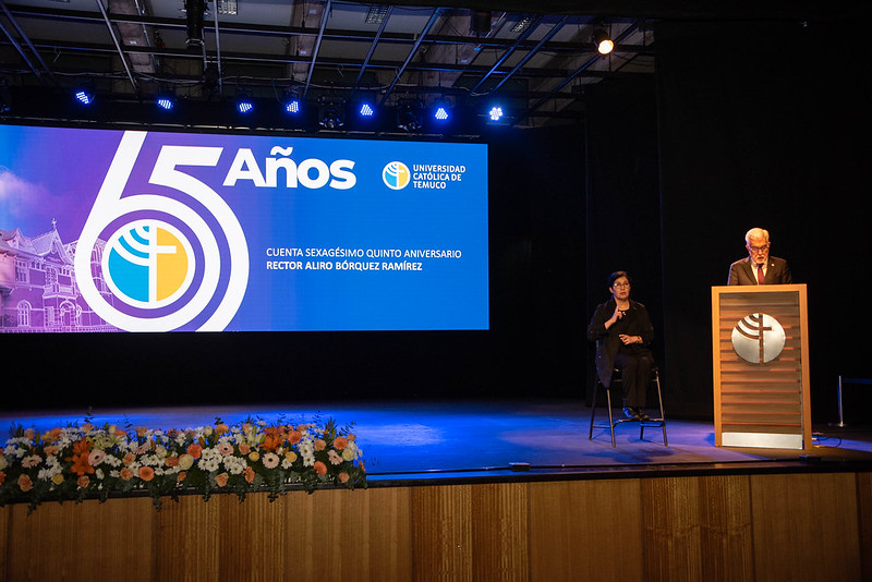 Una maciza revisión de los 12 años en los que ha estado a cargo de la Universidad Católica de Temuco, realizó el rector Aliro Bórquez en la ceremonia de aniversario de los 65 años de la casa de estudios frente a toda la comunidad UCT.