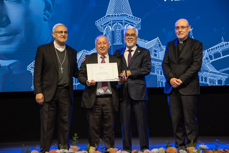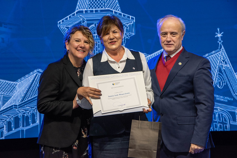 Como es tradición en la institución, en la ocasión se hizo un sentido reconocimiento tanto a estudiantes como a funcionarios. Las máximas autoridades de la UC Temuco, el Gran Canciller, Jorge Concha y el Rector, Aliro Bórquez, entregaron el Premio “Medalla Monseñor Alejandro Menchaca Lira”, al funcionario Sergio Salazar, quien representa y testimonia de mejor manera, los principios, valores y misión del ser y quehacer de la universidad.