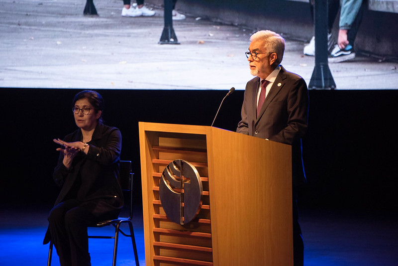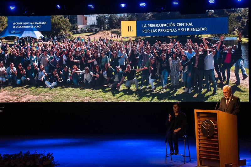 Luego, la primera autoridad académica tuvo la oportunidad de realizar un balance reflexivo de los diferentes ejes que han marcado la trayectoria y desarrollo de la universidad en sus tres periodos de gestión, destacando las acciones en torno a la profundización del sello institucional, la preocupación central por las personas, la inclusión y la equidad en la formación, la mayor complejidad del proyecto académico y el alcance institucional de su compromiso público, entre otros.